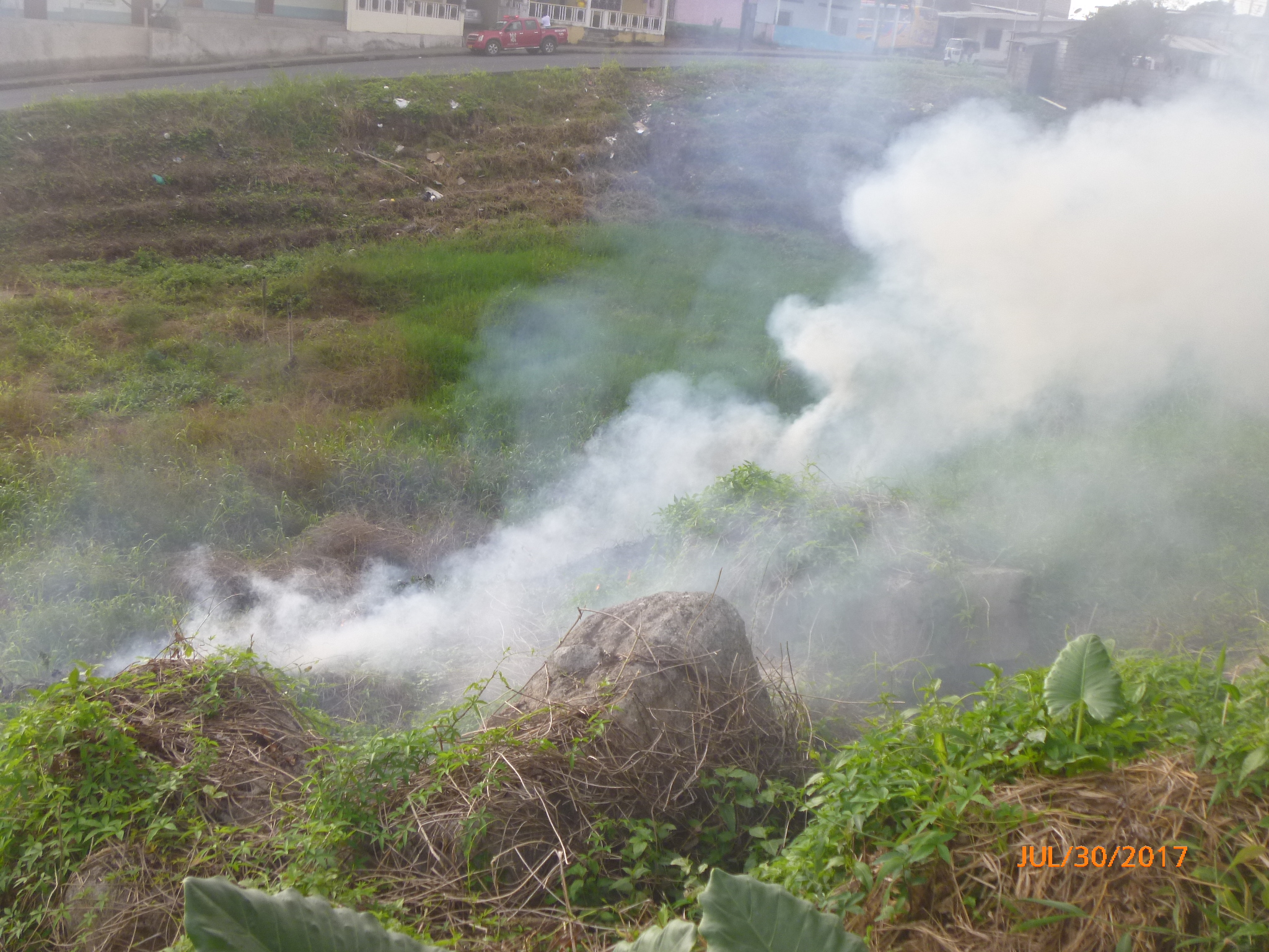 En horas de la tarde del último domingo se registró una Quema de Malezas en un terreno baldío la calle Sebastián Benalcázar entre las calles Toribio Alcívar y Rosa Mosquera.